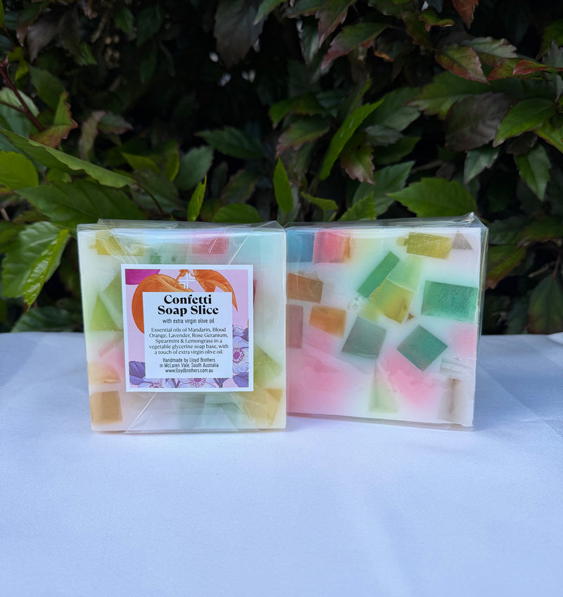 Confetti Soap Slice $8.00 Translation missing: en.products.product.unit_price_label /per View details Default Title - $8.00 — Added to Cart View Cart or Continue Shopping. Added to Cart: View Cart or Continue Shopping. Oops!: Looks like this item is out of stock. Translation missing: en.products.product.unit_price_label /per Add to Cart